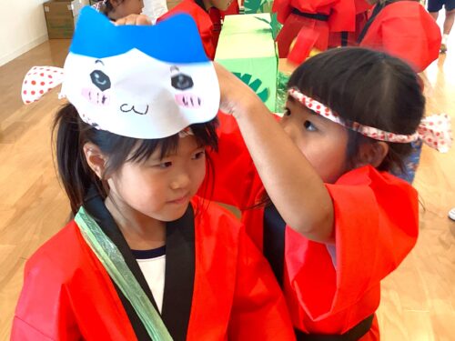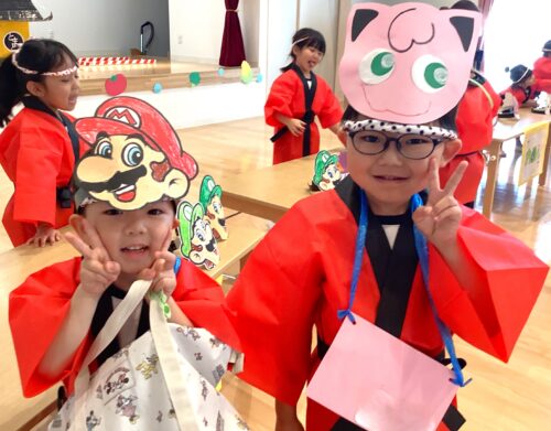 お面コーナーではマリオやポケモン、ちいかわやアンパンマンなど子ども達が好きなキャラクターがたくさんあり、お気に入りのキャラクターをみつけ喜んでいました♪