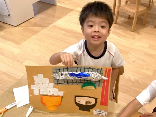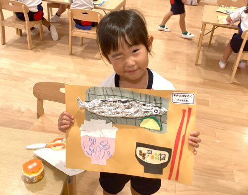 じゃがいも組は秋の製作で「さんま定食」を作りました!今回は画用紙や折紙といった紙素材の他に、「アルミホイル」を使ってみました!