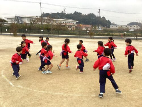 おいかけっこや、しっぽとりゲームを思いきり楽しんでいます♪子どもは風の子ですね😊