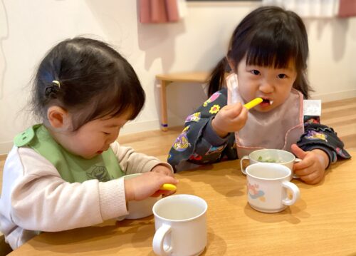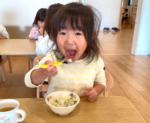 お昼寝後でしたが、もりもり美味しく食べる子ども達です😋♪