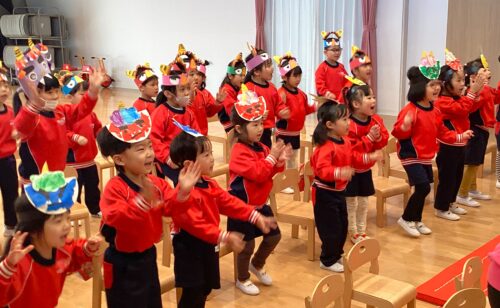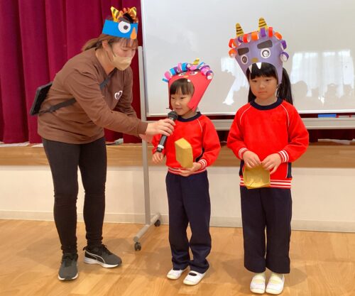 節分にむけ、鬼のお面や、升の準備をしてきた子ども達、当日の集会では由来を聞いたり、歌をうたったり、ゲームをしたりと楽しく過ごしました♪